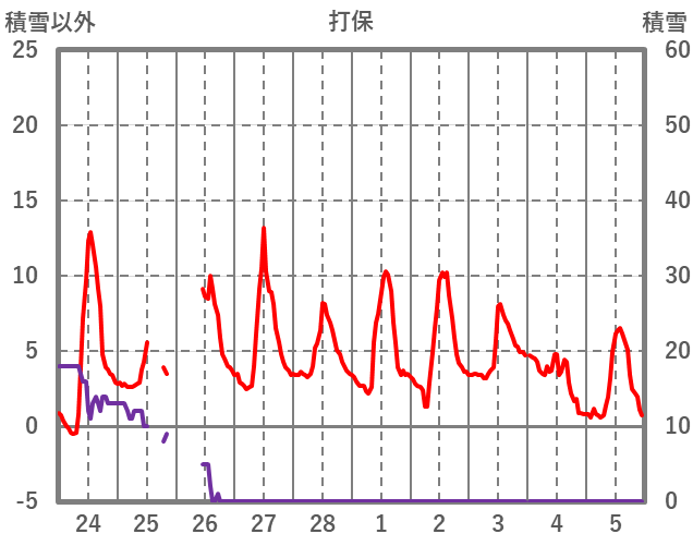 | 日 | 時 | 気温 | 降水 | 風向/風速 | 日照 | 積雪 | 降雪 |