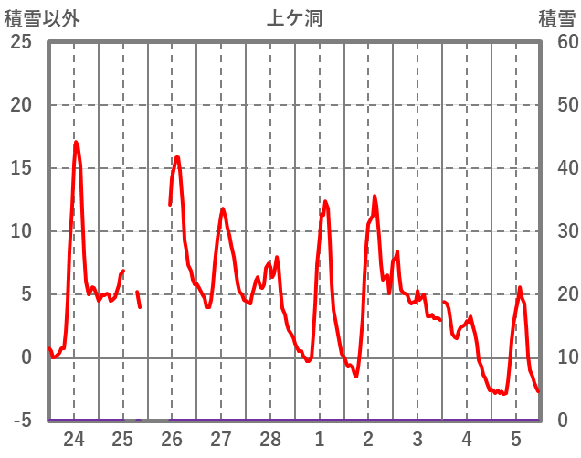 | 日 | 時 | 気温 | 降水 | 風向/風速 | 日照 | 積雪 | 降雪 |