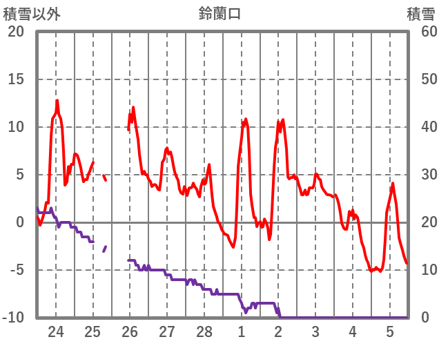 | 日 | 時 | 気温 | 降水 | 風向/風速 | 日照 | 積雪 | 降雪 |