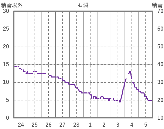 | 日 | 時 | 気温 | 降水 | 風向/風速 | 日照 | 積雪 | 降雪 |