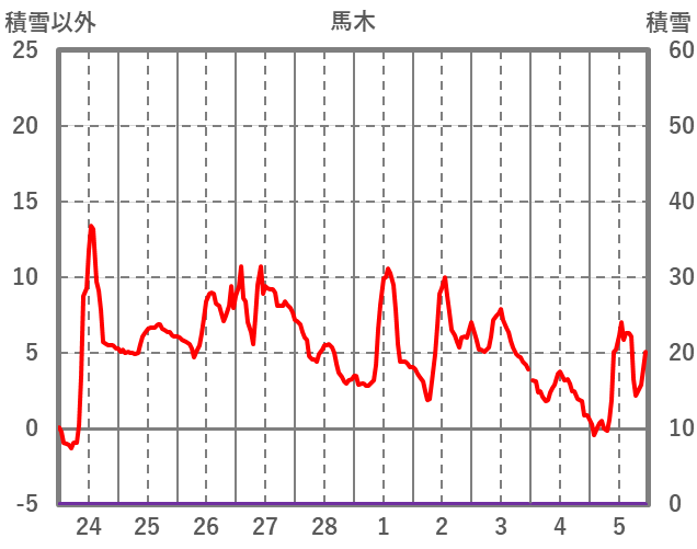 | 日 | 時 | 気温 | 降水 | 風向/風速 | 日照 | 積雪 | 降雪 |