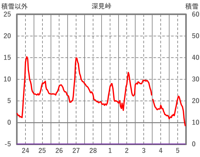 | 日 | 時 | 気温 | 降水 | 風向/風速 | 日照 | 積雪 | 降雪 |
