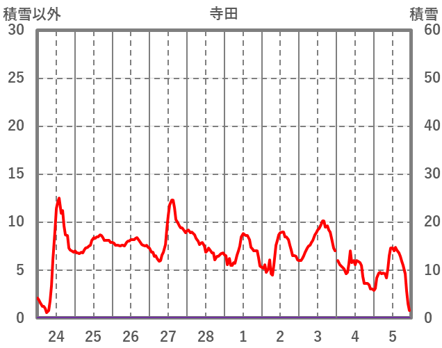 | 日 | 時 | 気温 | 降水 | 風向/風速 | 日照 | 積雪 | 降雪 |
