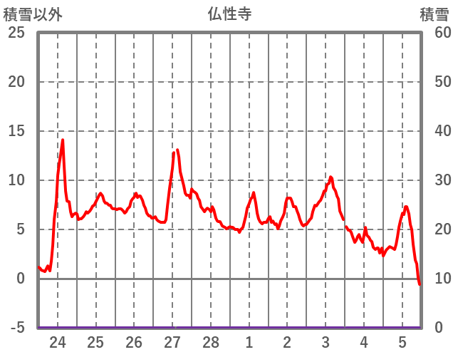 | 日 | 時 | 気温 | 降水 | 風向/風速 | 日照 | 積雪 | 降雪 |