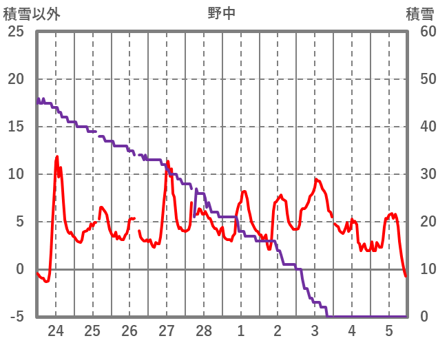 | 日 | 時 | 気温 | 降水 | 風向/風速 | 日照 | 積雪 | 降雪 |