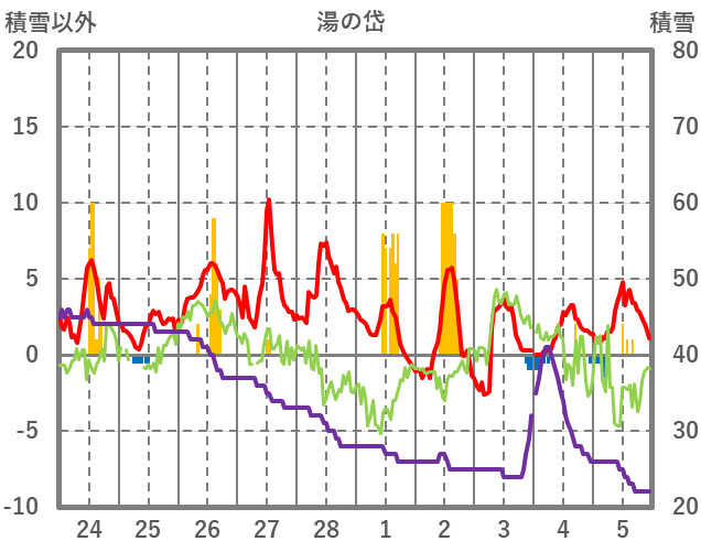 | 日 | 時 | 気温 | 降水 | 風向/風速 | 日照 | 積雪 | 降雪 |