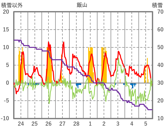 | 日 | 時 | 気温 | 降水 | 風向/風速 | 日照 | 積雪 | 降雪 |