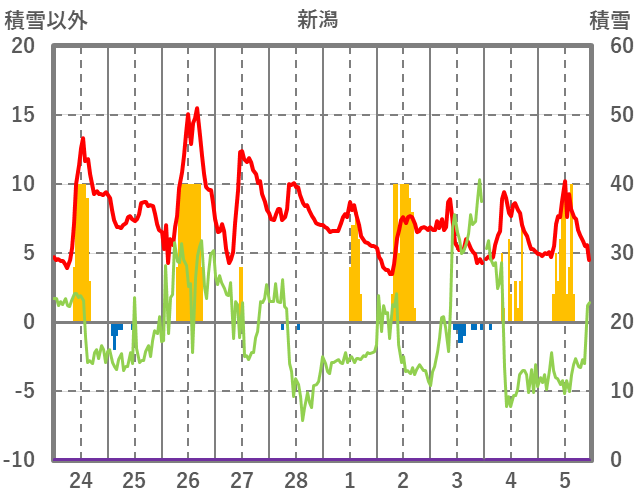| 日 | 時 | 気温 | 降水 | 風向/風速 | 日照 | 積雪 | 降雪 |