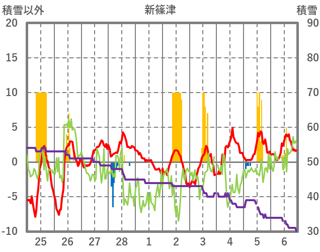 | 日 | 時 | 気温 | 降水 | 風向/風速 | 日照 | 積雪 | 降雪 |