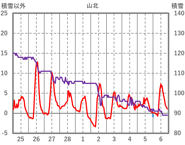 | 日 | 時 | 気温 | 降水 | 風向/風速 | 日照 | 積雪 | 降雪 |