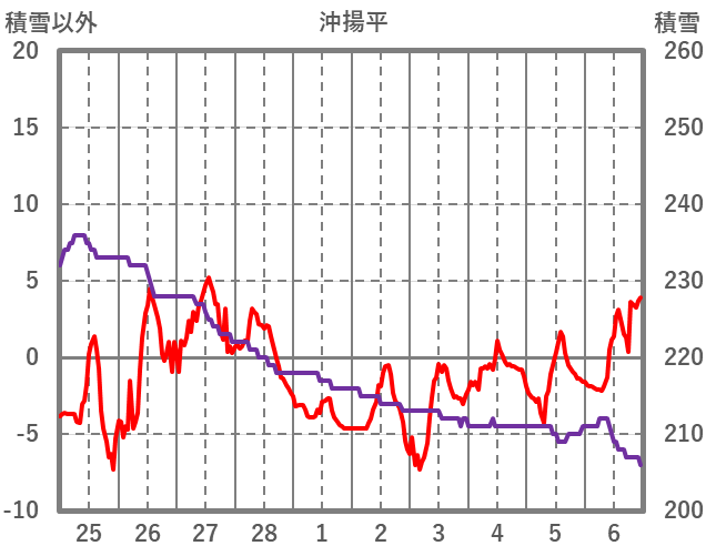 | 日 | 時 | 気温 | 降水 | 風向/風速 | 日照 | 積雪 | 降雪 |