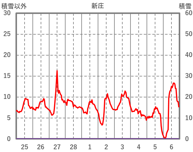 | 日 | 時 | 気温 | 降水 | 風向/風速 | 日照 | 積雪 | 降雪 |