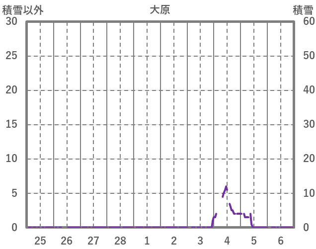 | 日 | 時 | 気温 | 降水 | 風向/風速 | 日照 | 積雪 | 降雪 |