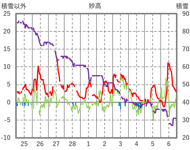 | 日 | 時 | 気温 | 降水 | 風向/風速 | 日照 | 積雪 | 降雪 |