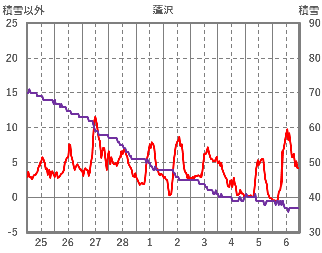 | 日 | 時 | 気温 | 降水 | 風向/風速 | 日照 | 積雪 | 降雪 |