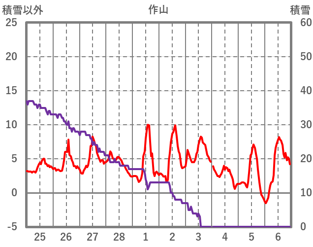 | 日 | 時 | 気温 | 降水 | 風向/風速 | 日照 | 積雪 | 降雪 |