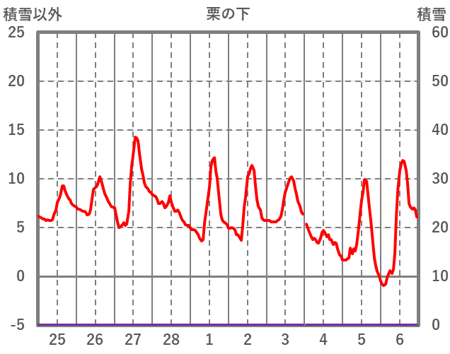 | 日 | 時 | 気温 | 降水 | 風向/風速 | 日照 | 積雪 | 降雪 |