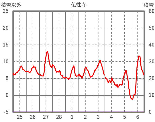 | 日 | 時 | 気温 | 降水 | 風向/風速 | 日照 | 積雪 | 降雪 |