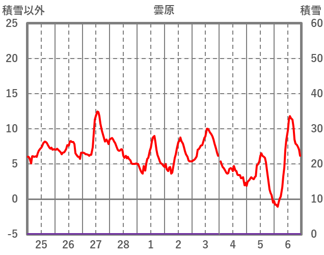 | 日 | 時 | 気温 | 降水 | 風向/風速 | 日照 | 積雪 | 降雪 |