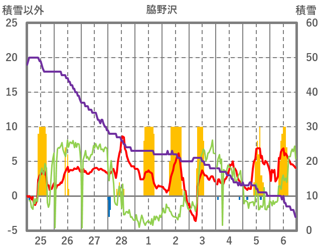 | 日 | 時 | 気温 | 降水 | 風向/風速 | 日照 | 積雪 | 降雪 |