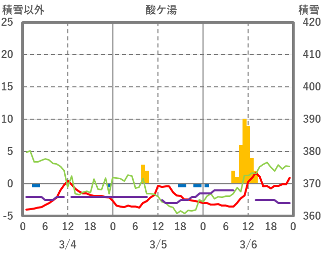 | 日 | 時 | 気温 | 降水 | 風向/風速 | 日照 | 積雪 | 降雪 |