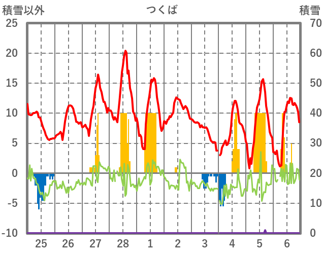 | 日 | 時 | 気温 | 降水 | 風向/風速 | 日照 | 積雪 | 降雪 |