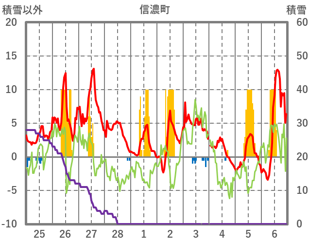| 日 | 時 | 気温 | 降水 | 風向/風速 | 日照 | 積雪 | 降雪 |