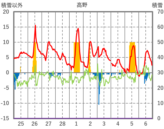 | 日 | 時 | 気温 | 降水 | 風向/風速 | 日照 | 積雪 | 降雪 |