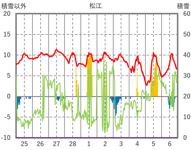 | 日 | 時 | 気温 | 降水 | 風向/風速 | 日照 | 積雪 | 降雪 |