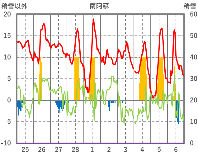| 日 | 時 | 気温 | 降水 | 風向/風速 | 日照 | 積雪 | 降雪 |
