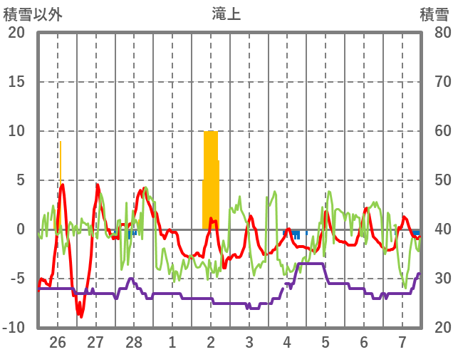 | 日 | 時 | 気温 | 降水 | 風向/風速 | 日照 | 積雪 | 降雪 |