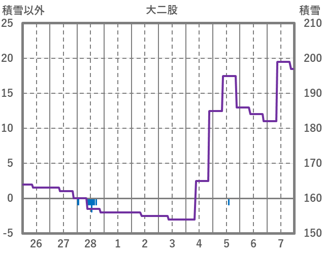 | 日 | 時 | 気温 | 降水 | 風向/風速 | 日照 | 積雪 | 降雪 |