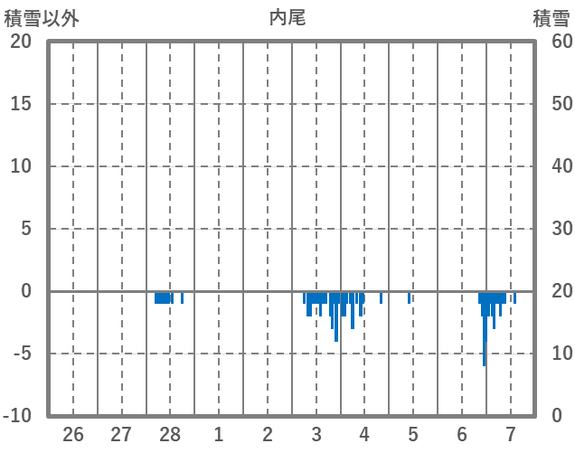 | 日 | 時 | 気温 | 降水 | 風向/風速 | 日照 | 積雪 | 降雪 |