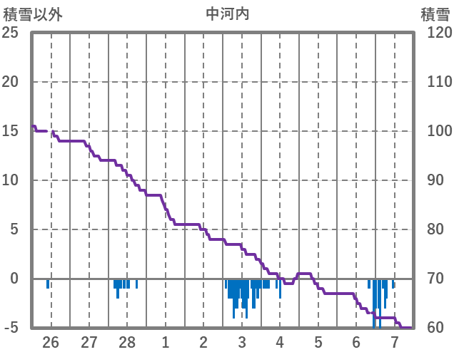 | 日 | 時 | 気温 | 降水 | 風向/風速 | 日照 | 積雪 | 降雪 |