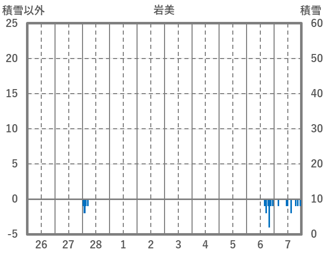 | 日 | 時 | 気温 | 降水 | 風向/風速 | 日照 | 積雪 | 降雪 |