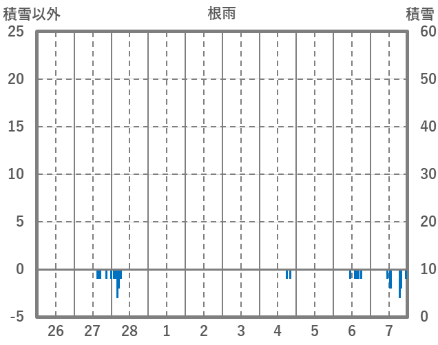 | 日 | 時 | 気温 | 降水 | 風向/風速 | 日照 | 積雪 | 降雪 |