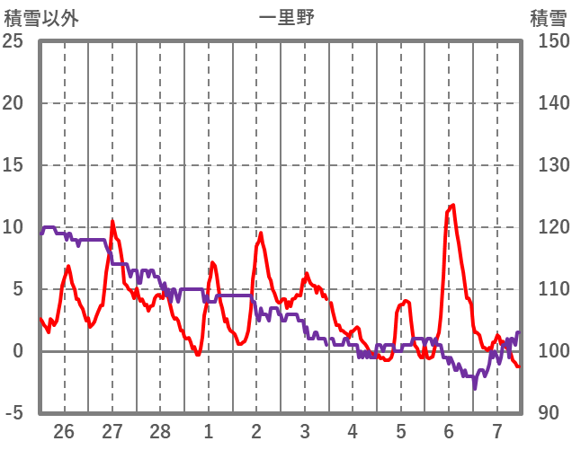 | 日 | 時 | 気温 | 降水 | 風向/風速 | 日照 | 積雪 | 降雪 |