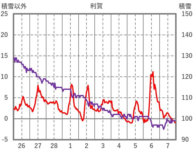 | 日 | 時 | 気温 | 降水 | 風向/風速 | 日照 | 積雪 | 降雪 |