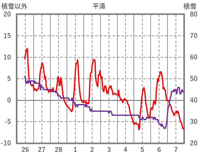 | 日 | 時 | 気温 | 降水 | 風向/風速 | 日照 | 積雪 | 降雪 |