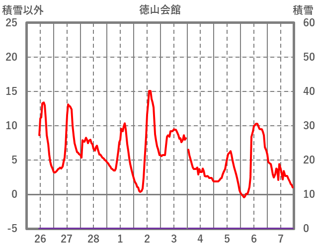| 日 | 時 | 気温 | 降水 | 風向/風速 | 日照 | 積雪 | 降雪 |