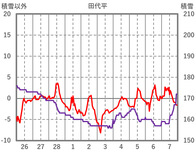 | 日 | 時 | 気温 | 降水 | 風向/風速 | 日照 | 積雪 | 降雪 |