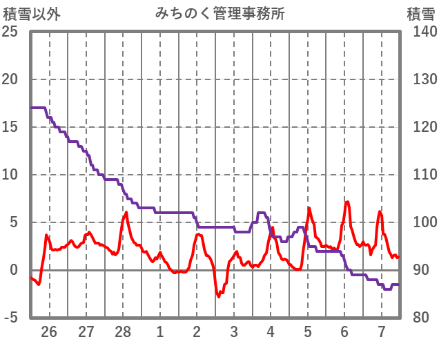 | 日 | 時 | 気温 | 降水 | 風向/風速 | 日照 | 積雪 | 降雪 |