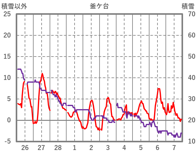 | 日 | 時 | 気温 | 降水 | 風向/風速 | 日照 | 積雪 | 降雪 |