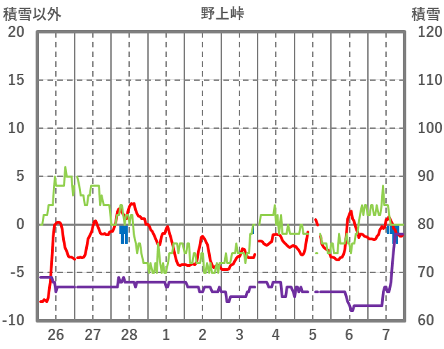 | 日 | 時 | 気温 | 降水 | 風向/風速 | 日照 | 積雪 | 降雪 |