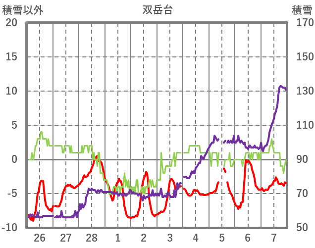 | 日 | 時 | 気温 | 降水 | 風向/風速 | 日照 | 積雪 | 降雪 |