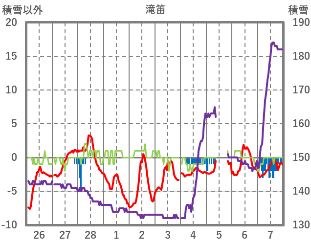| 日 | 時 | 気温 | 降水 | 風向/風速 | 日照 | 積雪 | 降雪 |