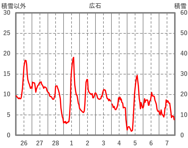 | 日 | 時 | 気温 | 降水 | 風向/風速 | 日照 | 積雪 | 降雪 |