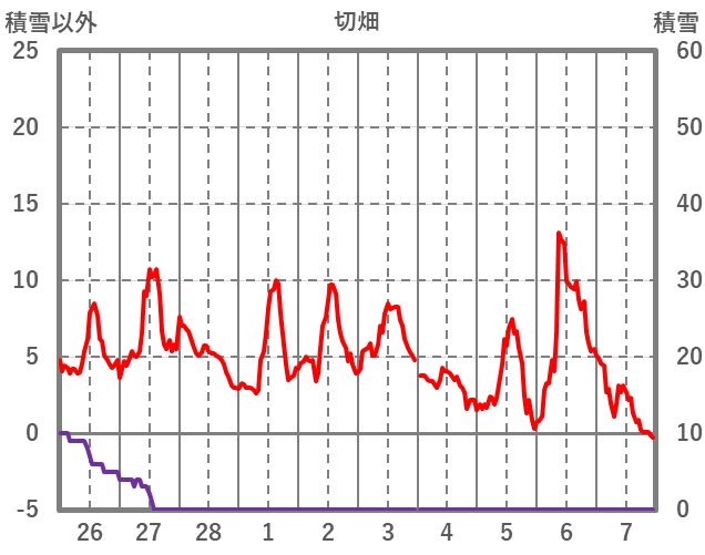 | 日 | 時 | 気温 | 降水 | 風向/風速 | 日照 | 積雪 | 降雪 |