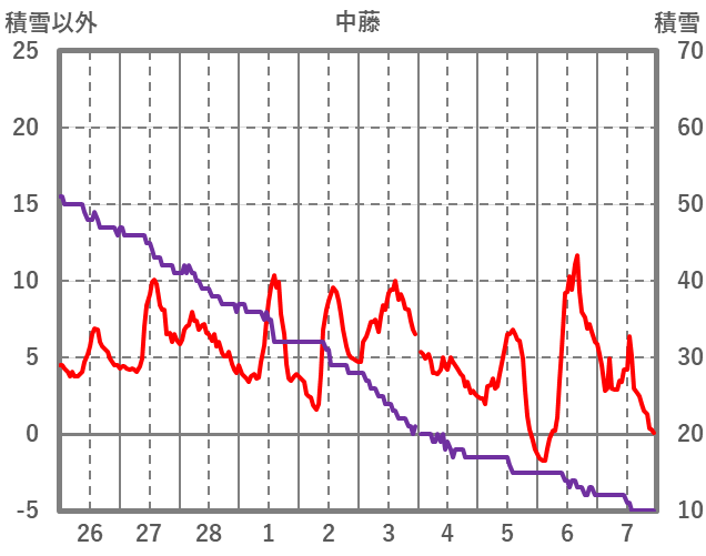 | 日 | 時 | 気温 | 降水 | 風向/風速 | 日照 | 積雪 | 降雪 |
