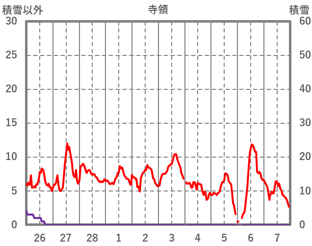 | 日 | 時 | 気温 | 降水 | 風向/風速 | 日照 | 積雪 | 降雪 |
